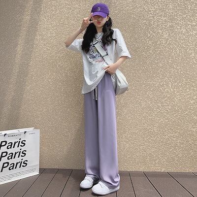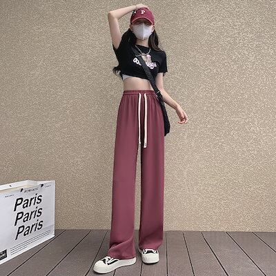 2025新作 ワイドパンツ レー ワイドパンツ 薄手 ハイウエスト ストレート レディース スウェットパンツ 着痩せ 接触冷感ボトムス おしゃれヨガウェア ワイドパンツ スラックスパンツ
