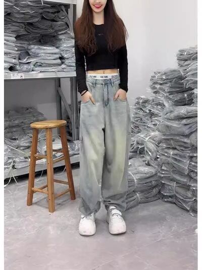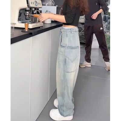 ワイドパンツ ジーンズ レディース 秋 パンツ ブルー 薄手 ハイウエスト ファッション ゆったり 大きいサイズ 美脚 韓国