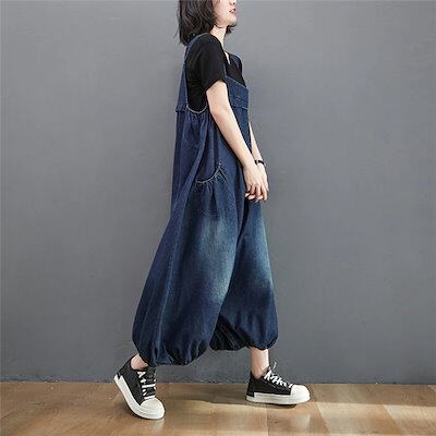 サロペットパンツ デニム ジーンズ ワイドパンツ サロペット レディース 30代50代 オールインワン オーバーオール 大きいサイズ お出かけ カジュアル
