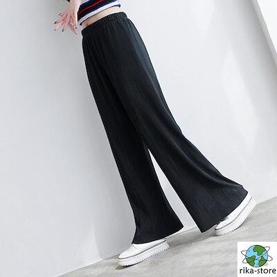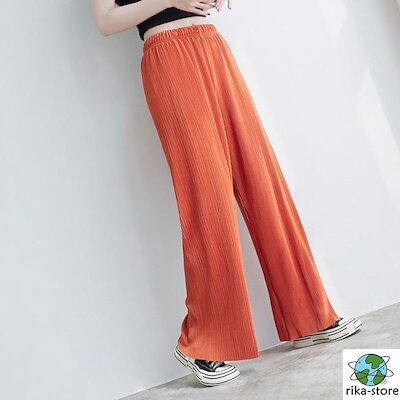 出荷が早いプリーツパンツ レディース 夏 セルフカット プリーツ パンツ ワイドパンツ 大きいサイズ 裾カット ボトムス カラーパンツ 体型カバー