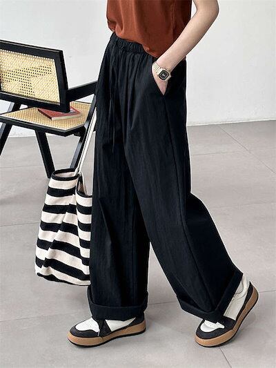 ワイドパンツ レディース タックパンツ カーゴパンツ ボトムス 春 夏 秋 無地 楽チン ロング丈 ウエストゴム ガウチョパンツ チノパンツ ワークパンツ ストレート 体型カバー ロング 楽ちん シン