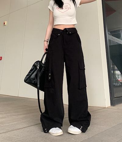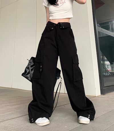 マルチポケット 着? カーゴパンツ レディース オーバーオール レディース ピンク シンプルハイウエストストレートワイドレッグパンツズボン 無地 襟無 春 夏 ファッション
