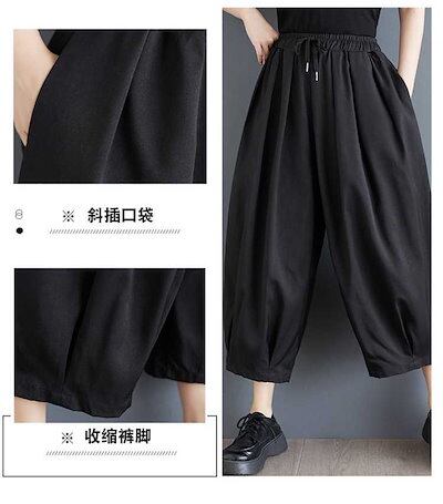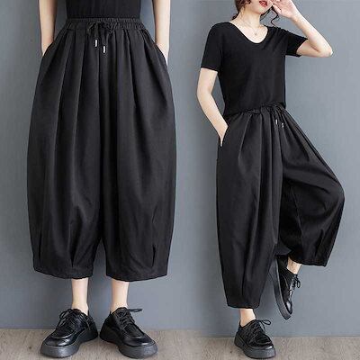 「ファットガール」 2024春夏 九分丈 ワイドパンツ ゴム ハイウエスト レディース 体型カバー ロングパンツ