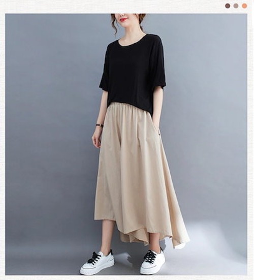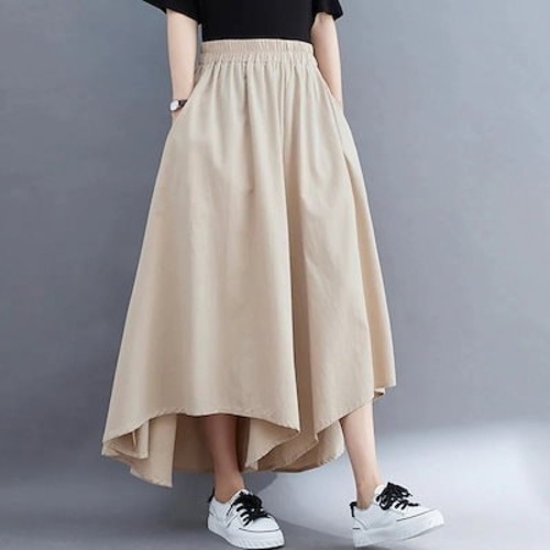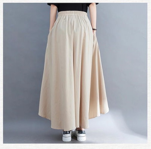 「ファットガール」 春夏 キュロットスカート 九分丈 ワイドパンツ 体型カバー ゆる 大きいサイズ 不規則裾 スラックス ゴム ハイウエスト レディース 袋付き ロングパンツ フレア メガ割