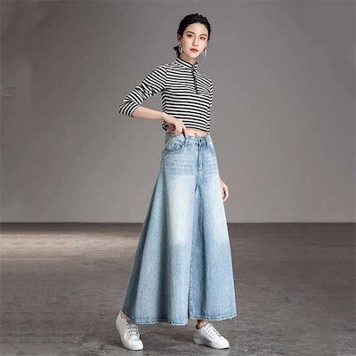 ワイドパンツ ゆったり ボトムス ストレート 春夏 ロング ジーンズ 春 レディース ガウチョパンツ 股上深め 冬 大きいサイズ 大人 美脚 秋 パンツ ハイウエスト 夏 きれいめ デニムパンツ ワイ