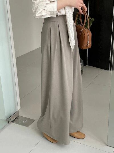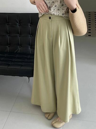 タックワイドパンツ レディース フレアパンツ タックパンツ ボトムス 春 イージーパンツ ワイドパンツ タック スラックス 美シルエット ハイウエスト ロング丈 きれいめ ふんわり ゆったり 美脚 通