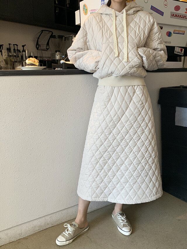 キルティングトップス ロングスカート セット デザイン 韓国ファッション レディース