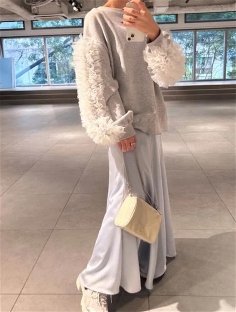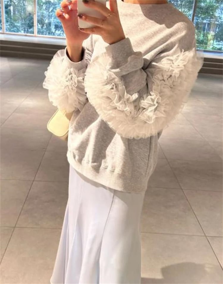 シックな雰囲気が魅力 激安セール 2024秋冬 あったかグッズ 新品 薄紗 トップス フリル 長袖 上着