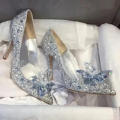 メガ割 ラインストーンハイヒールシンデレラシューズ女性パンプス先のとがったつま先女性クリスタル福袋