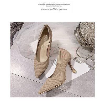 ハイヒール ポインテッドトゥ シューズ レディース 春夏 ニットパンプス ハイヒール 美脚 履きやすい 痛くない 靴 レディースシューズ 通勤 オシャレ