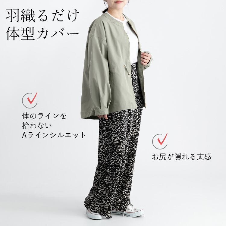 メモリーショートコート ショートジャケット マウンテンパーカー 大人 きれいめ ノーカラー ブルゾン