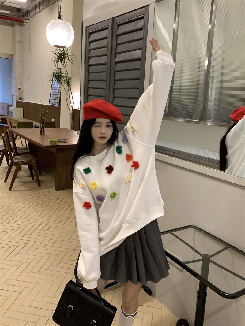 ins超人気 ★ 韓国風ゆったり長袖 ラウンドネック★ ハナ パーカー