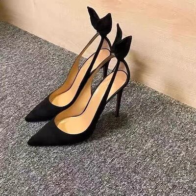 ブラック ハイヒール レディー ウサギの耳 ピンヒール ポインテッドトゥ セクシー クローズトゥ サンダル