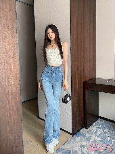 パンツ デニム ジーンズ スキニー ワイドレッグ ハイウエスト 脚長効果 美脚効果 細見え 春 カジュアル 韓国ファッション レディース お出かけ