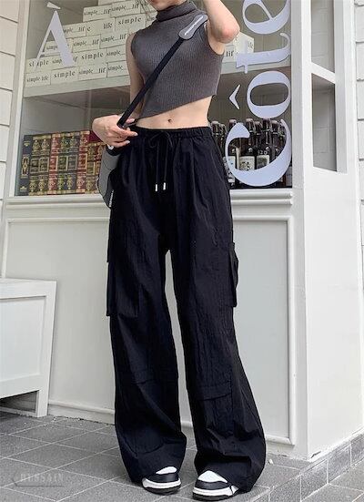 2024 春夏 ボトムス ドロスト ドローストリング ズボン ウエスト調節 カーゴパンツ ルーズ カジュアル系 ゆったり 美脚 脚長 スタイルアップ