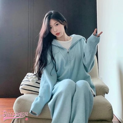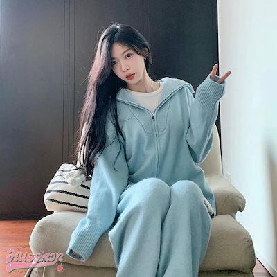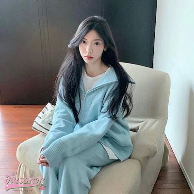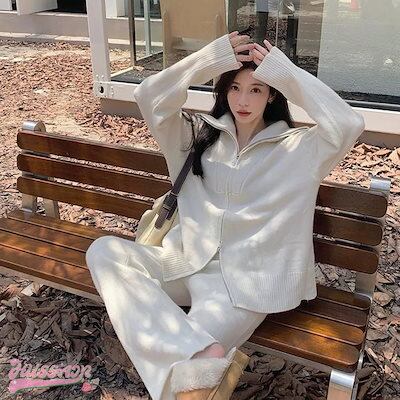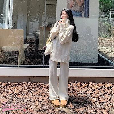 2024 春 *「単品注文」 大人の休日スタイルに ハイネック トップス パンツ セットアップ 羽織り スタンド ゆったり ボトムス 長袖 シルエット きれいめサイズ フルカジュアル秋 冬
