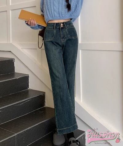 パンツ デニム ジーンズ ワイドレッグ ハイウエスト 脚長効果 美脚効果 細見え 春 ウォッシュ加工 カジュアル 韓国ファッション レディース お出かけ