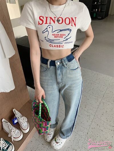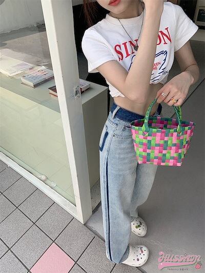 パンツ デニム ジーンズ ワイド ストレート ハイウエスト 脚長効果 美脚効果 細見え 春 水色 ライトブルー カジュアル 韓国ファッション レディース お出かけ
