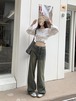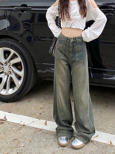 2024 春夏 パンツ デニム ジーンズ ロング丈 レッグ ストレート 脚長効果 美脚効果 細見え 秋 かわいい加工 カジュアル ファッション レディース お出かけ
