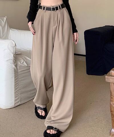 2024 春夏 パンツ ロング丈 ゆったり ハイウエスト 脚長効果 美脚効果 細見え 秋 カジュアル ストリート シンプル ファッション レディース お出かけ