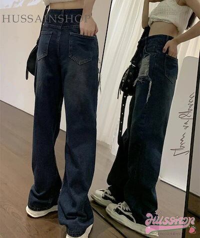 2024 春夏 usedライクなこなれた雰囲気 ポケット ハイウエスト ジーンズ ボトムス レッグ デニムパンツ スタイルアップ 脚長 加工カジュアル きれいめ