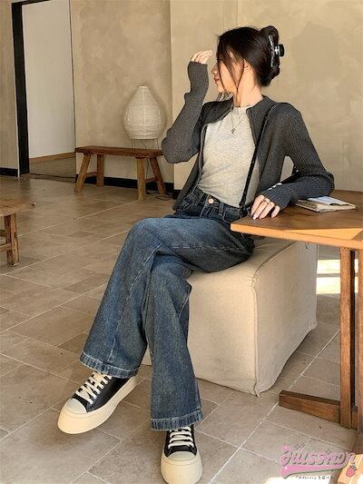 2024 春夏パンツ デニム ジーンズ ワイド ストレート ハイウエスト 脚長効果 美脚効果 細見え ウォッシュ加工 春 カジュアル 韓国ファッション レディース お出かけ