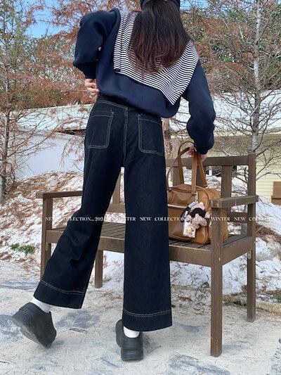 2024秋冬 防寒 あったか 厚手パンツ 九分丈 ロング丈ストレートハイウエストゆったり 脚長美脚細見え春カジュアル黒白韓国系ファッションレディースおしゃれ かわいい衣装トラック