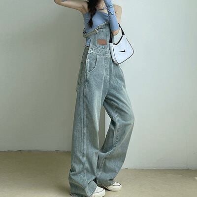 新款 レトロ デニム サロペット 春夏 ゆったり ワイドパンツ レディース オーバーオール ロングパンツ 流行り