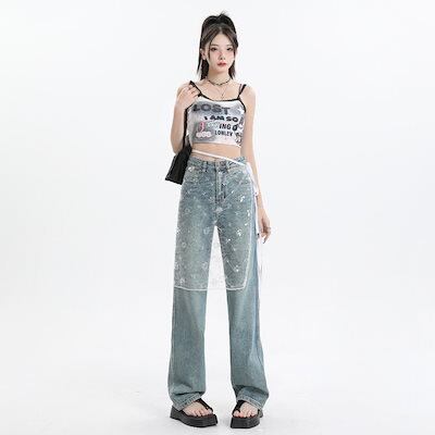 かっこいい!スラックスパンツ2025春の新作デニムパンツ レディース ワイドレッグ 見えやせ ハイウエストゆったり 垂れ感 ファッション