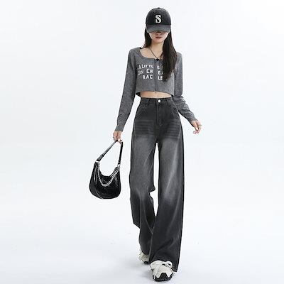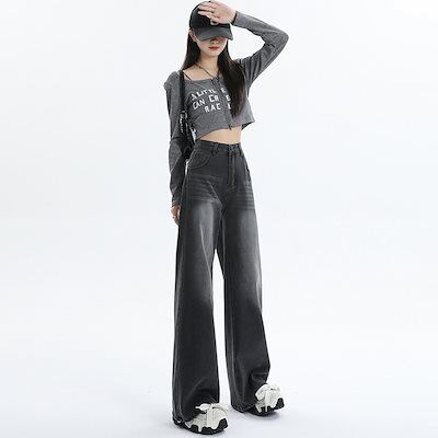 かっこいい!スラックスパンツ2025春の新作アメリカン ハイウエスト デニムパンツ おしゃれ パンツ レディース ワイドレッグ 見えやせ ハイウエストでゆったり 垂れ感