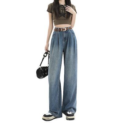 かっこいい!スラックスパンツ2025春 しわだらけのワイドパンツ デニムパンツ おしゃれ ハイウエストゆったり見えやせ パンツ レディース