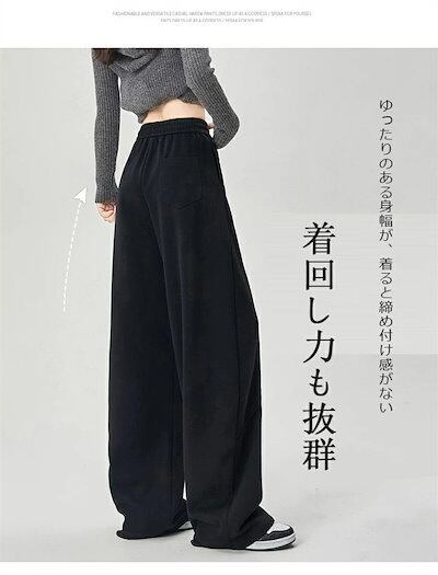 ワイドパンツ ガウチョパンツ レディース パンツ ロング丈 無地 イージーパンツ 春 秋冬 ロングパンツ ワイド スウェット ゆったり 体型カバー ジャージ カーブパンツ 長ズボン