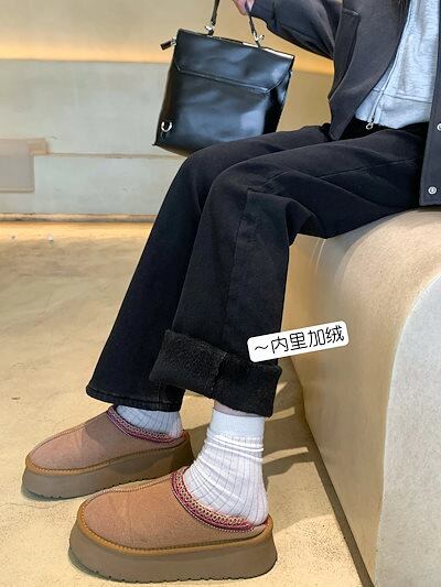 2024秋冬 防寒 あったか 厚手 2TYPE パンツロング丈ストレートハイウエストゆったり 脚長美脚細見え春カジュアル黒白韓国系ファッションレディースおしゃれ かわいい衣装トラック