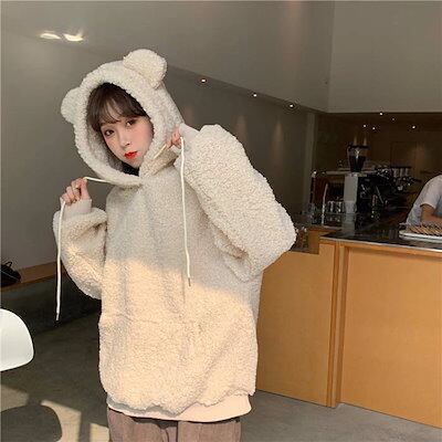 ボアパーカー レディース 秋冬 プルオーバー トップス ボア 重ね着風 大きいサイズ ボアパーカー レディース フード付き ジャージ 長袖 無地 春 秋 ドロップショルダー ゆったり 柔らかい お洒落