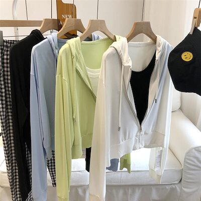パーカー レディース おしゃれ UVカット 紫外線対策 冷房対策 前開き 春 夏 ファスナー 大きいサイズ リゾート 薄手 上着 おしゃれ 羽織り 海 ゆったり オーバーサイズ フード付き 長袖 柔ら