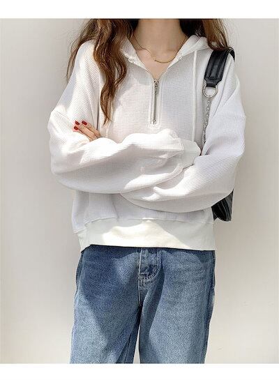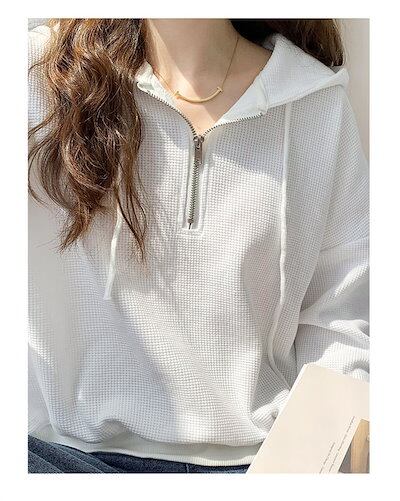 パーカー レディース おしゃれ 春 長袖 トレーナー レディース 韓国 スウェット カットソー レディース 秋 冬 春 ヘンリーネック tシャツ レディース 可愛い 大きいサイズ フード付き 無地 大
