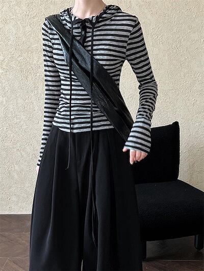 ストライプ パーカー 長袖 tシャツ パーカーtシャツ フーディー カットソー レディース スウェット 秋 冬 春 tシャツ レディース タイトシルエット フード付き シンプル タイト トップス ボー