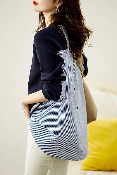 パーカー デザイン プルオーバー レディース カットソー チュニック トップス 切り替え 長袖 大きいサイズ ロンT Aライン 体型カバー ストライプ お洒落 大人 かわいい きれいめ 春 秋 夏