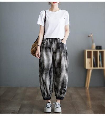 バルーンパンツ ワイドパンツ レディース パンツ コクーンパンツ チェック柄 無地 ボトムス ジャガード素材 バギー イージーパンツ 柔らか 森ガール ズボン ウエストゴム 大きいサイズ ゆったり 体