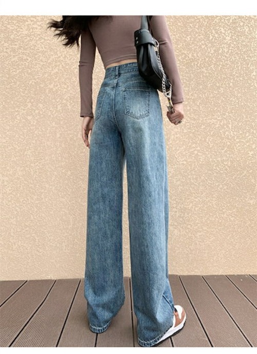 ストレートワイドパンツ デニムパンツ レディース パンツ ジーパン 大人カジュアル デニムワイドパンツ ボトムス ロング 長ズボン ジーンズ ハイウエスト 大きいサイズ ゆったり 体型カバー 柔らか