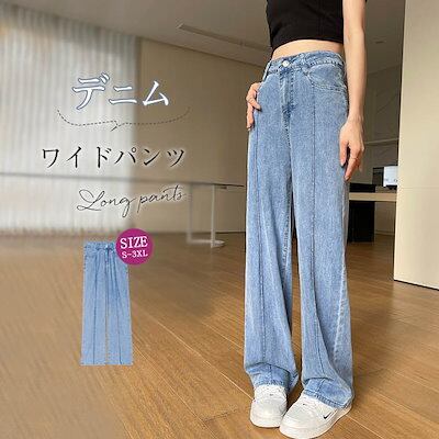 ワイドパンツ レディース デニムパンツ センターラインデザイン ストレートパンツ 薄手 接触冷感 デニム パンツ 涼しい ボトムス ロングパンツ ジーンズ 大きいサイズ ゆったり 体型カバー 大人 楽
