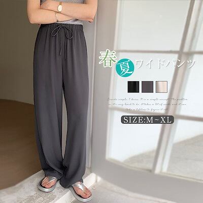 ワイドパンツ 夏 レディース ストレートパンツ ワイド パンツ ロングパンツ ボトムス ウエストゴム 無地 シンプル カジュアル フォーマル 通勤 オフィス 大きいサイズ 着痩せ ゆったり 美脚 落ち