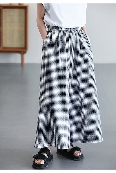 ギンガムチェックワイドパンツ レディース 夏 九分丈 薄手 チェックパンツ チェック柄 大きいサイズ ボトムス パンツ きれいめ ワイドパンツ 綿麻風パンツ 綿混 ウエストゴム オフィス 通勤 体型カ