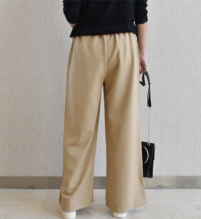 落ち感あり ワイドパンツ レディース 春 きれいめ ボトムス ロング丈 大きいサイズ 柔らか ウエストゴム ゆったり 通勤 バギーパンツ イージー 美脚 体型カバー 大人 カジュアル オフィス OL