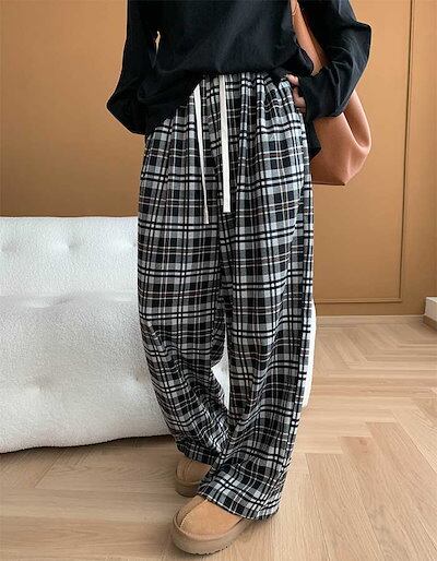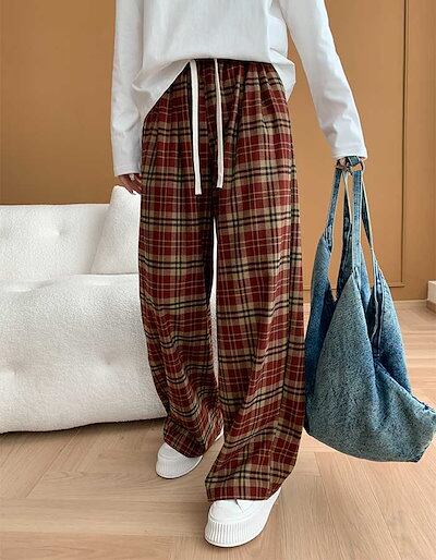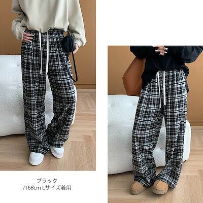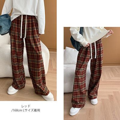 ワイドパンツ レディース チェック柄 ガウチョパンツ イージーパンツ ロング丈 パンツ ズボン ボトムス リラックスパンツ チェックパンツ 大きいサイズ ウエストゴム ゆったり 大きめ リラックス ス