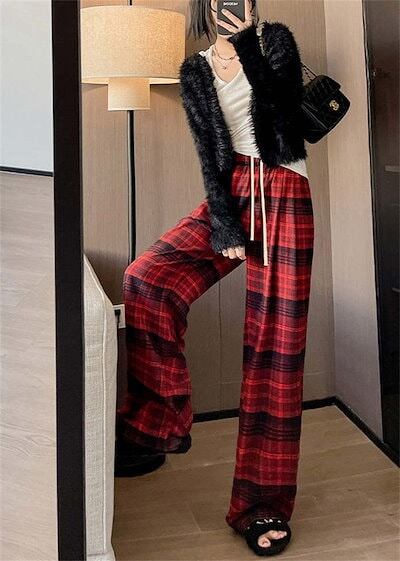 チェックパンツ レディース 秋冬 ワイドパンツ ロングパンツ 春 秋 冬 ガウチョパンツ 裏起毛 2type ボトムス パンツ チェック柄 ワイド 大きいサイズ ストレート ウエストゴム ポケット ゆ