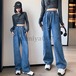 新作 デニムガウチョ ワイドデニム ワイドパンツ ガウチョ レディース ジーンズ デニムパンツ 大きいサイズ ハイウエスト ウエストゴム 体型カバー