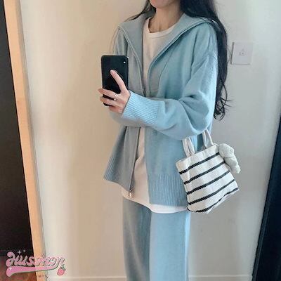 2024 春 *「単品注文」 大人の休日スタイルに ハイネック トップス パンツ セットアップ 羽織り スタンド ゆったり ボトムス 長袖 シルエット きれいめサイズ フルカジュアル秋 冬