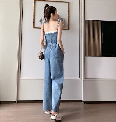 デニムサロペット レディース ワイドパンツ ロング丈 オーバーオール オールインワン 体型カバー 大きいサイズ 春夏