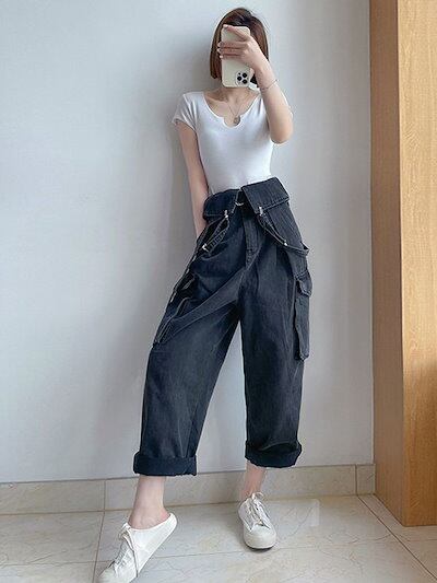 コーデ完成!サロペット 時短コーデ イチオシオールインワン 韓国ファッション 新作 デニム サロペット レディー ワイドパンツ デザイン感 オーバーオール 大きいサイズ オールインワン 福袋